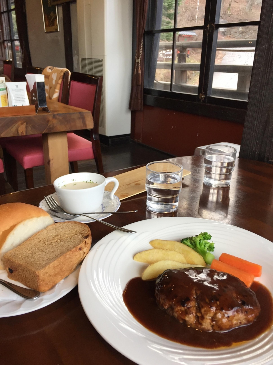 東照宮見学の後、日光のB級グルメの湯葉ラーメンを食べようと思いましたが、お店の看板にあったハンバーグの写真に魅かれ入店しました。