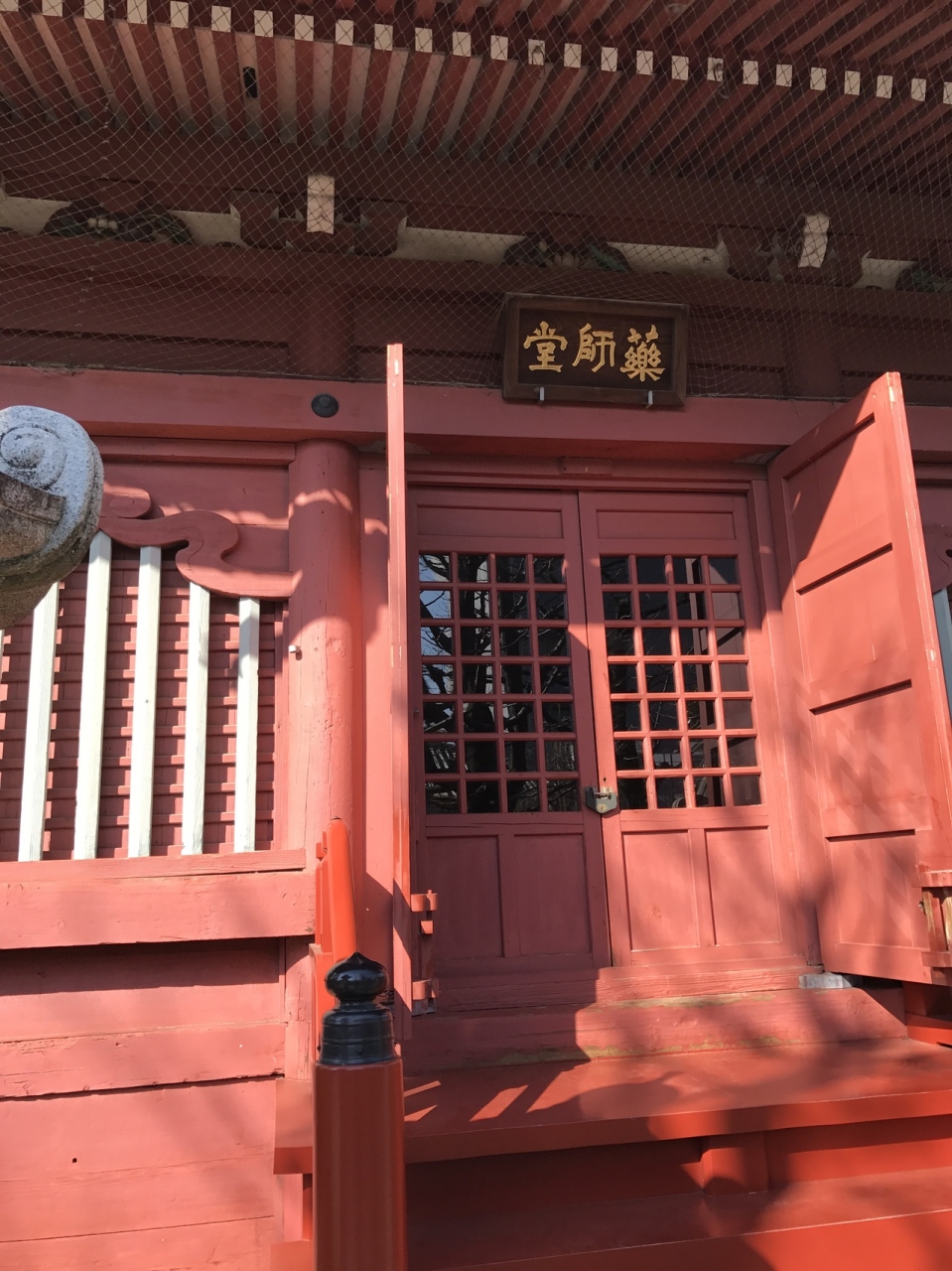 薬師堂は当初は観音堂の北方にあり北薬師堂と呼ばれていたそうです。慶安2年、1649年に三代将軍徳川家光が観音堂の北西に再建し、家光が掘りにかかる橋の傍らにあったので橋本薬師堂と名付けた由緒ある薬師堂ですね。
