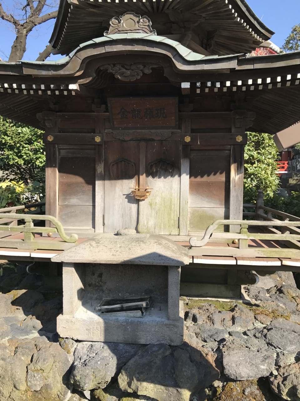 浅草寺にある金龍権現てあります。寺伝の縁起によれば、浅草寺ご本尊観音様のご示現にあたり天より百尺ばかりの金龍が、舞い降りてその興徳をたたえ、観音様をお守りしたとされることから、浅草寺の山号を金龍山といいます。