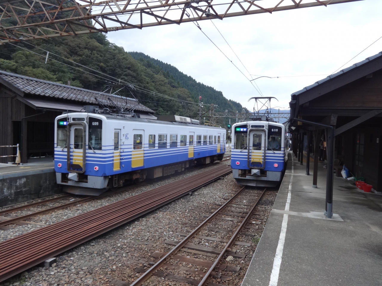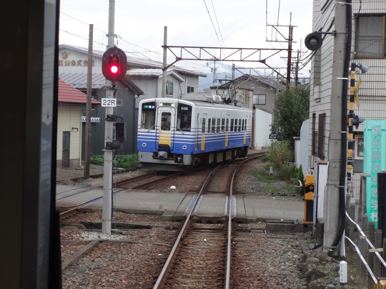 福井駅から九頭竜川に沿って内陸に走っていく路線。前身の京福電鉄時代は、大野市まで走ってた時代もありましたが、現在は途中の勝山駅までの路線となっています。同じえちぜん鉄道でも海方向に向かってずっと平らなところを走る三国芦原線とは対照的に、どんどん標高が上がっていくような感覚があります。