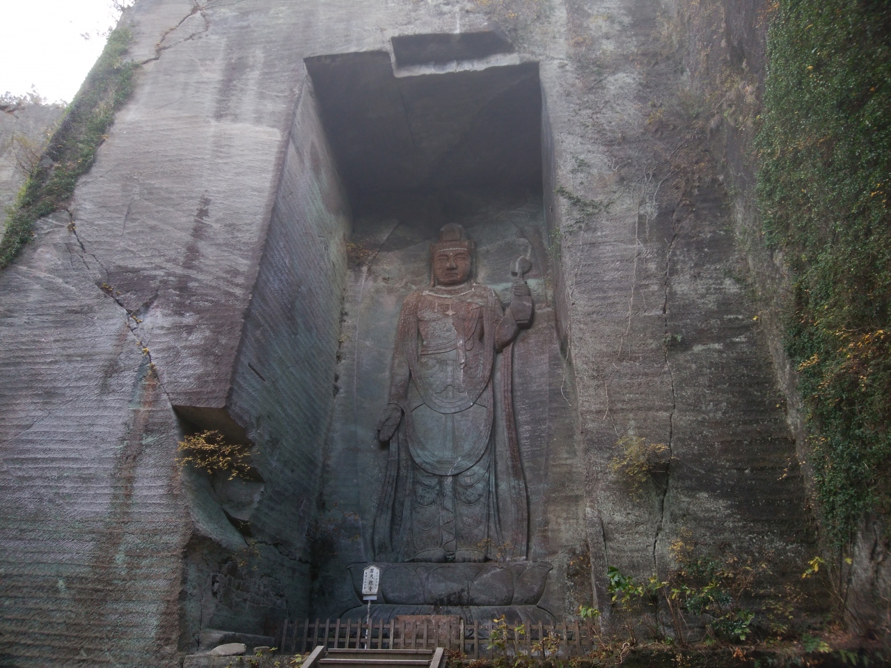 のこぎり山にある日本寺の境内にある大きな大きな彫刻の観音さまです。もともと石切場だったこの地ですが、その石切場跡に、この彫刻の観音さまが完成したのは、昭和41年のことだそうです。