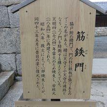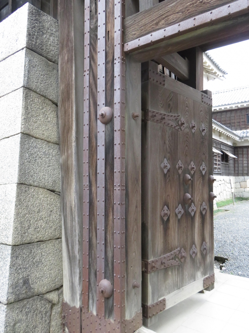 幾つかの門を通り過ぎ、天守の庭へと入る最後の門が鉄筋門です。筋鉄門は櫓門で、天守玄関がある中庭を防衛する重要な門です。だからか、門の扉には鉄の補強が行われていて、この名の由来となっているようです。実際に見ると、強固な造りを実感させられます。