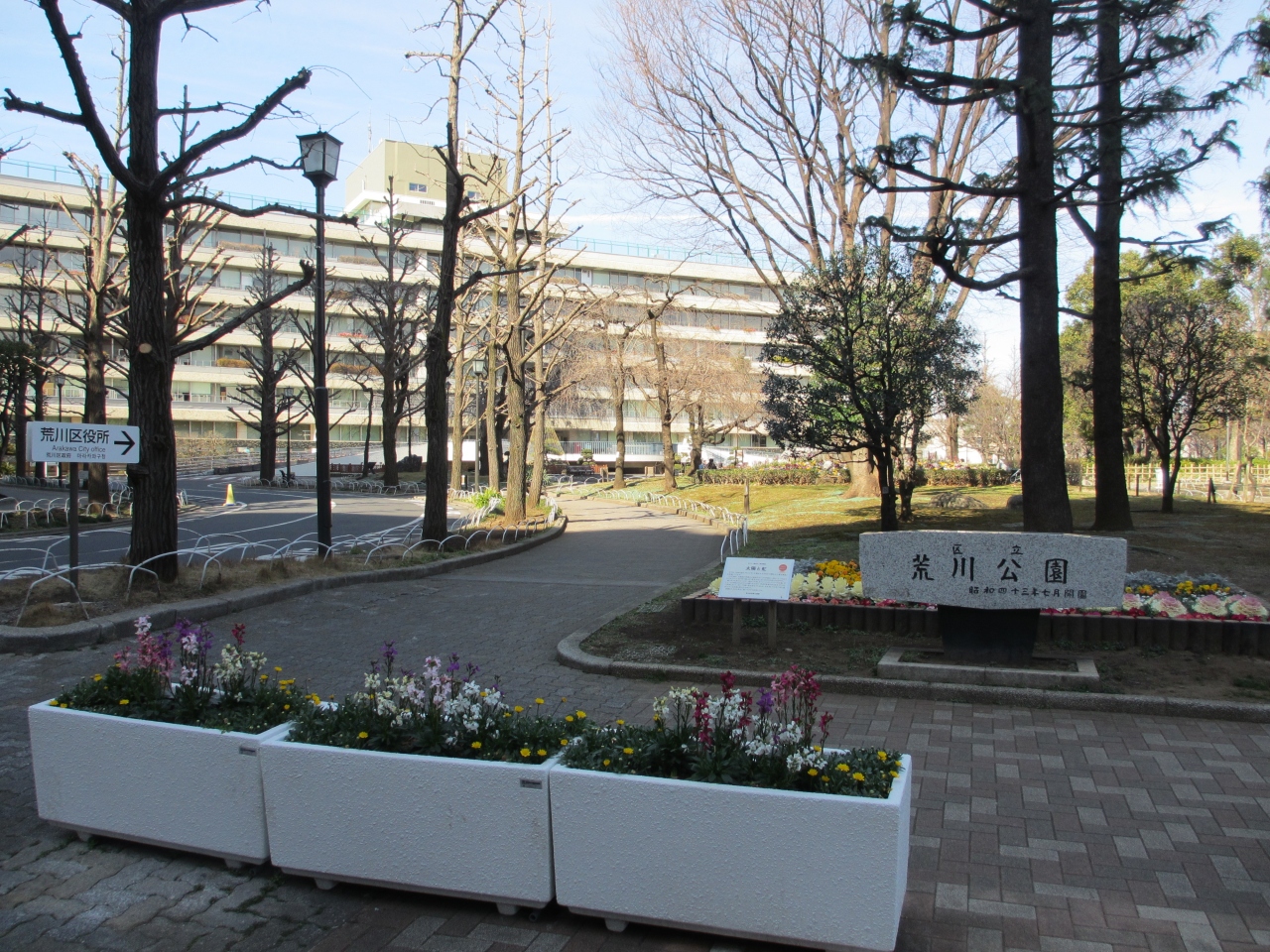 明治通り沿い、荒川区役所の隣にある公園です。明治通り沿いからは入口が狭く、広い公園には見えませんが、中に入ると奥が長く広い公園です。緑豊かな公園内には石像や彫刻が点在しています。地下水を利用した防火水槽や発電施設も備わっています。お年寄りがベンチに腰掛け将棋を指していたり、小学生が鬼ごっこをしたり、地元の人が自転車でやってきて池で釣りを楽しんだり、ベンチに座り家族連れがお弁当を食べていたりしていました。特に見どころがあるわけではありませんが、のどかな公園です。