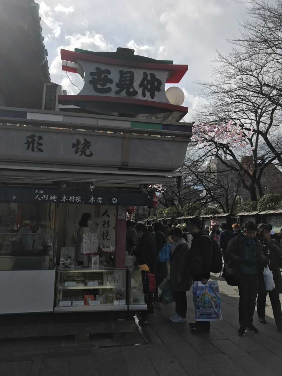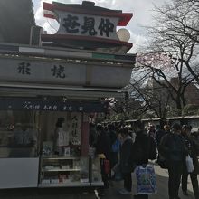 浅草の雷門から浅草寺へと続く仲見世通りは平日の昼間でも賑わっています。