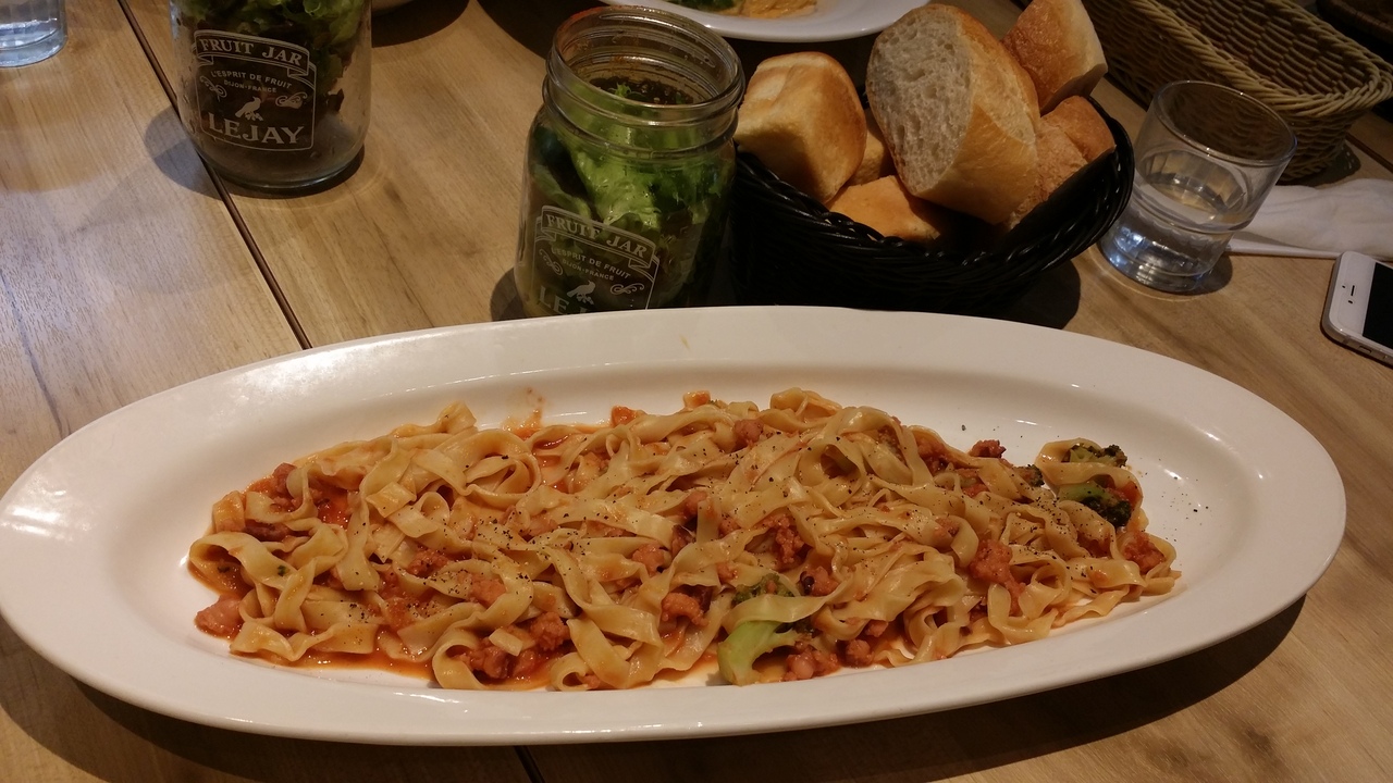 友人とのランチに利用しました。新大阪駅のビル2階にあり通路何か所かから入っていける開放的なお店でした。ランチメニューは日替わりで何種類か選べるようになっていました。ドリンクをつけて1500円超えるくらいです。私はクリーム系のパスタランチを注文、サラダがこじゃれた瓶に入ってきてかわいかったです。あとパンがついていて、パンだけでも十分美味しかったです。6人で伺ったのですが、同じものを注文して同時にパスタが運ばれたのですが、1人だけ待ってもなかなかパスタが運ばれてこず、注文を忘れられているのではないかとやきもきし店員さんに確認すると「今作っています」とお返事が。同じ注文をして一人分だけ遅れるのであれば、一言「後程お持ちします」などの気づかいがあれば更に楽しく過ごせたと思います。ごちそうさまでした。