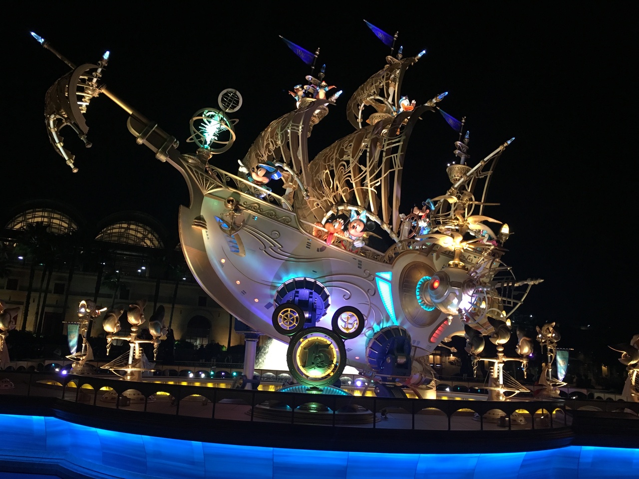 東京ディズニーシーのシンボルといえばアクアスフィアです。入園してすぐにあるためパークに来る全ての人が見ることになります。だいたいは朝と夜にしかこちらの前を通ることは無いですが、朝と夜では違った表情を見せているので比べてみてください。15周年の飾り付けも今だけです。