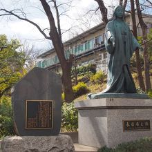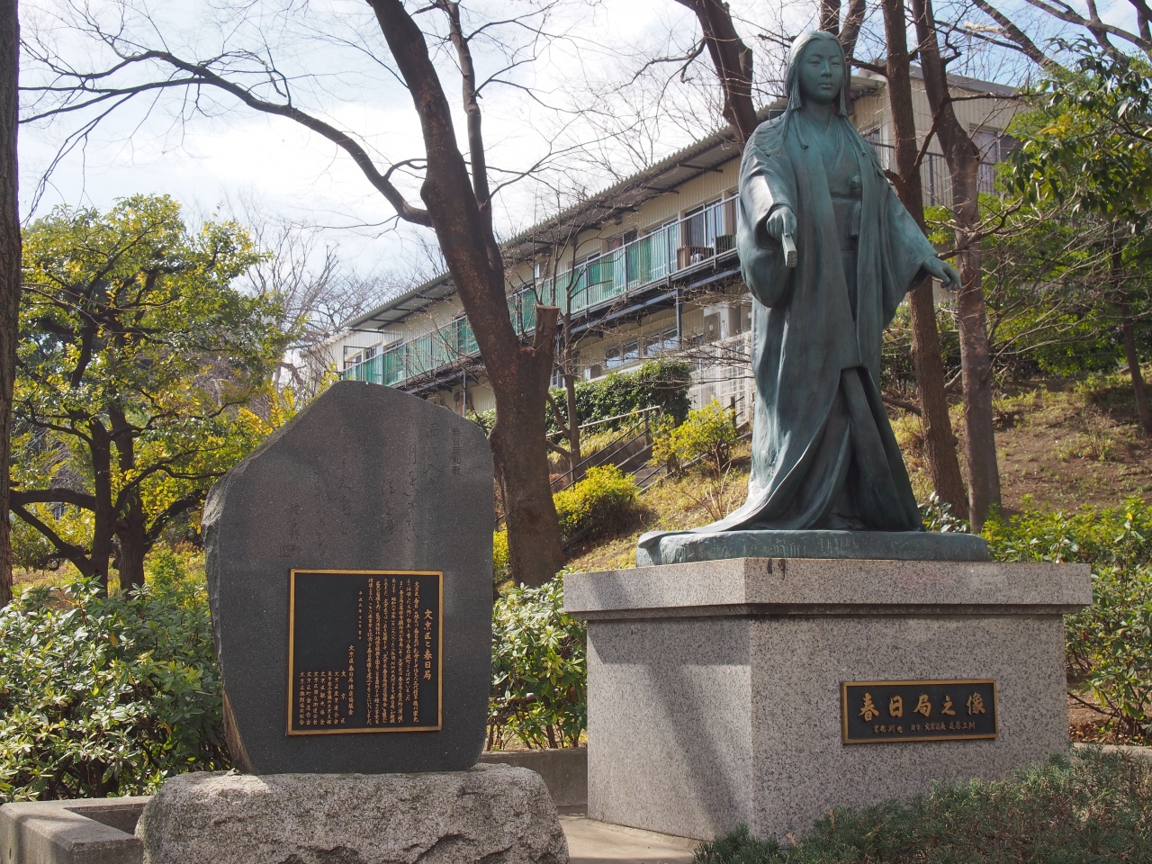 春日局は文京区春日の地名の由来になった人物で、徳川家光の乳母として仕え、その後は家光の威光で大奥の支配、元締めとして活躍した人物です。普段は裏の権力者として日が当たることはないのですが、NHKの大河ドラムで取り上げられて一気に知名度が上がり、大河ドラマなどを記念して建てられてた記念の像です。凛々しい感じの春日局の像ですが、これはドラマなどの役者の影響で、実際は小太りの叔母さんであったようです。