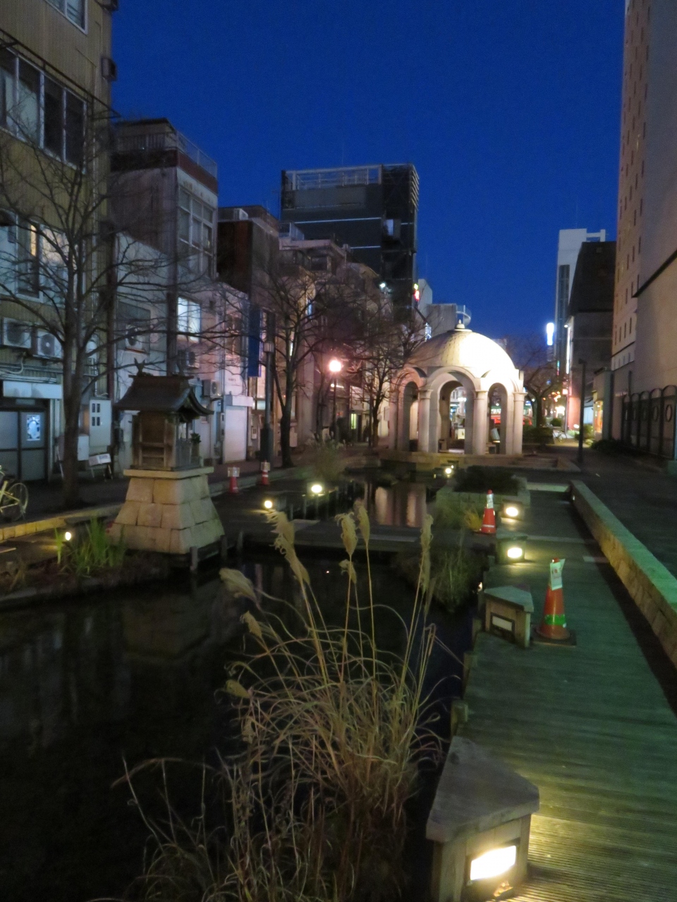 はりまや橋公園は、はりまや橋交差点から小川沿いに、東側に整備された公園。小規模な公園です。夜に訪れましたが、観光客はゼロに近く、静かな様相でした。