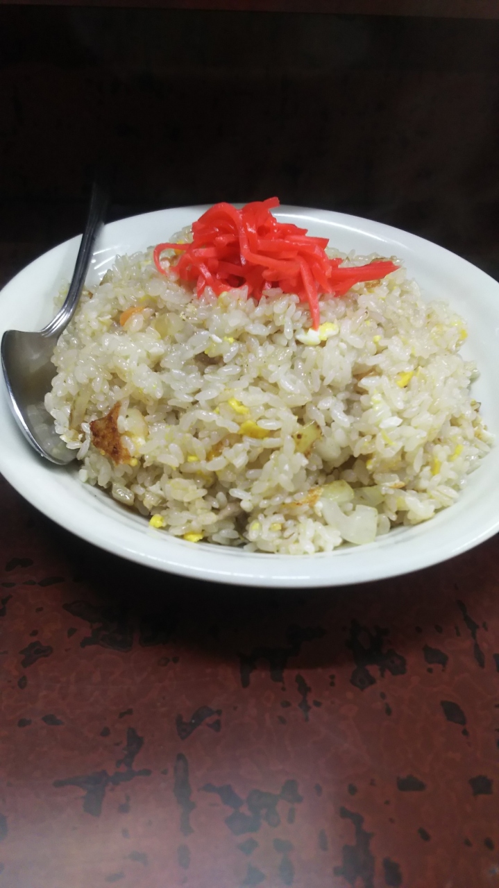 中央バスターミナルの地下食堂街にあるお店です。かなり昭和な雰囲気がたまりません。前回はチャーハン450円をいただきましたが今回はチャーハン中盛500円をいただきました。