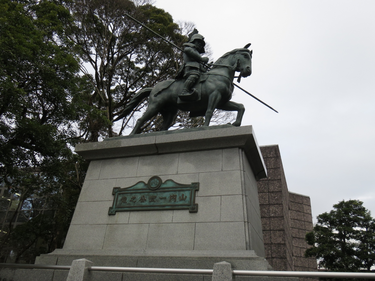 高知城を目指して歩いていたら、城内に入る手前に立派な像を発見!