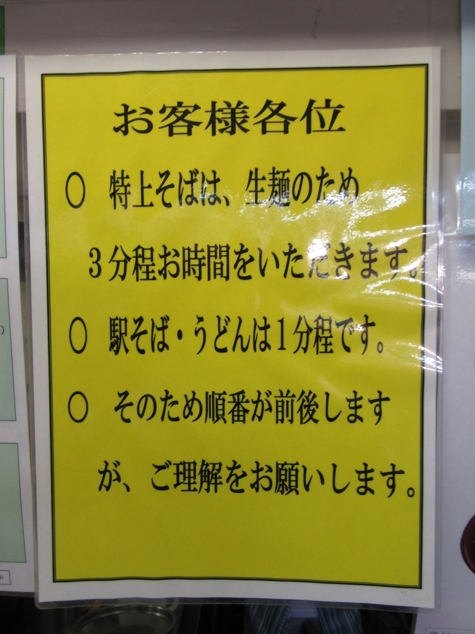 特上は生麺で駅そばより3分ほど時間が掛かる、