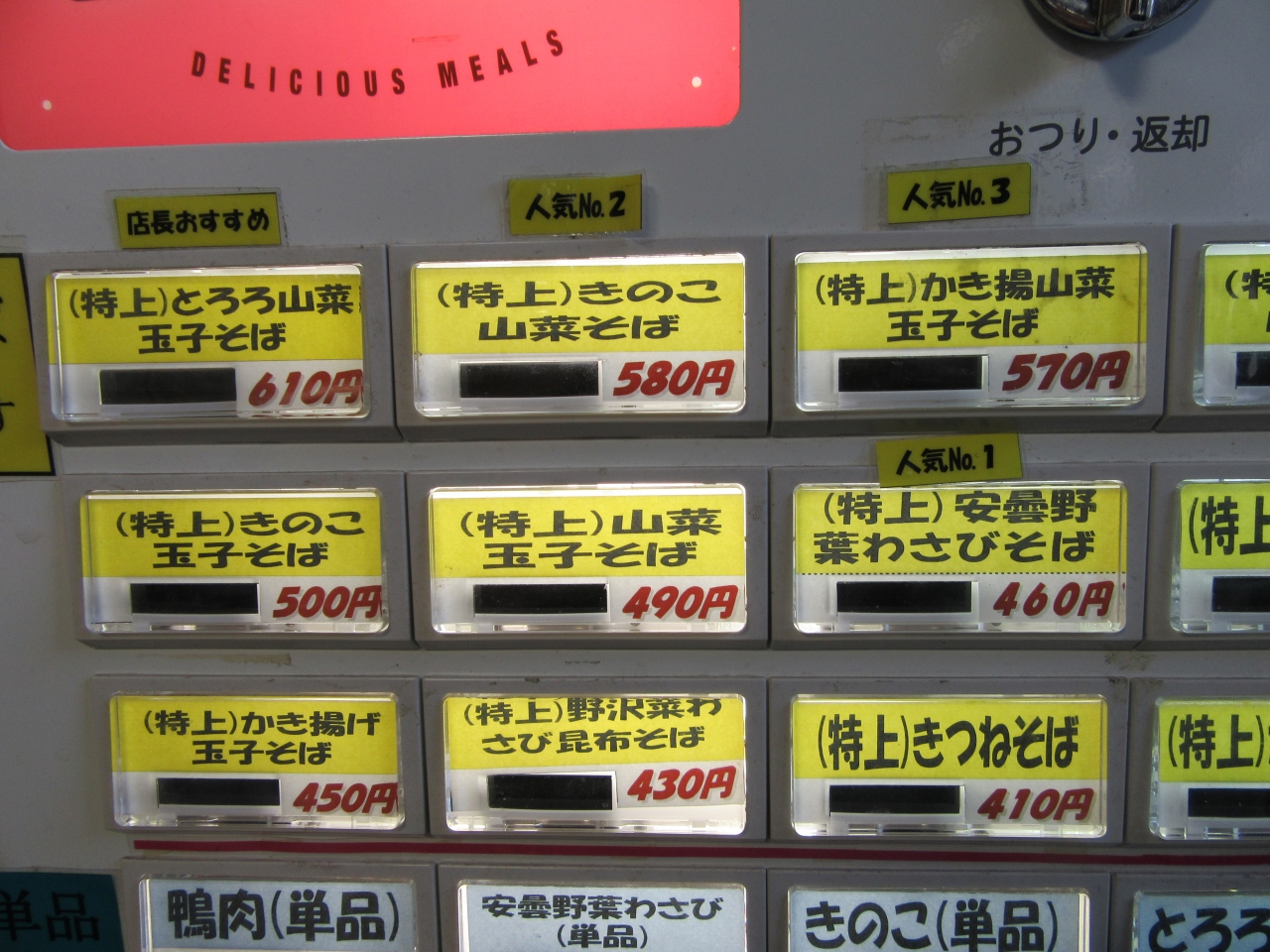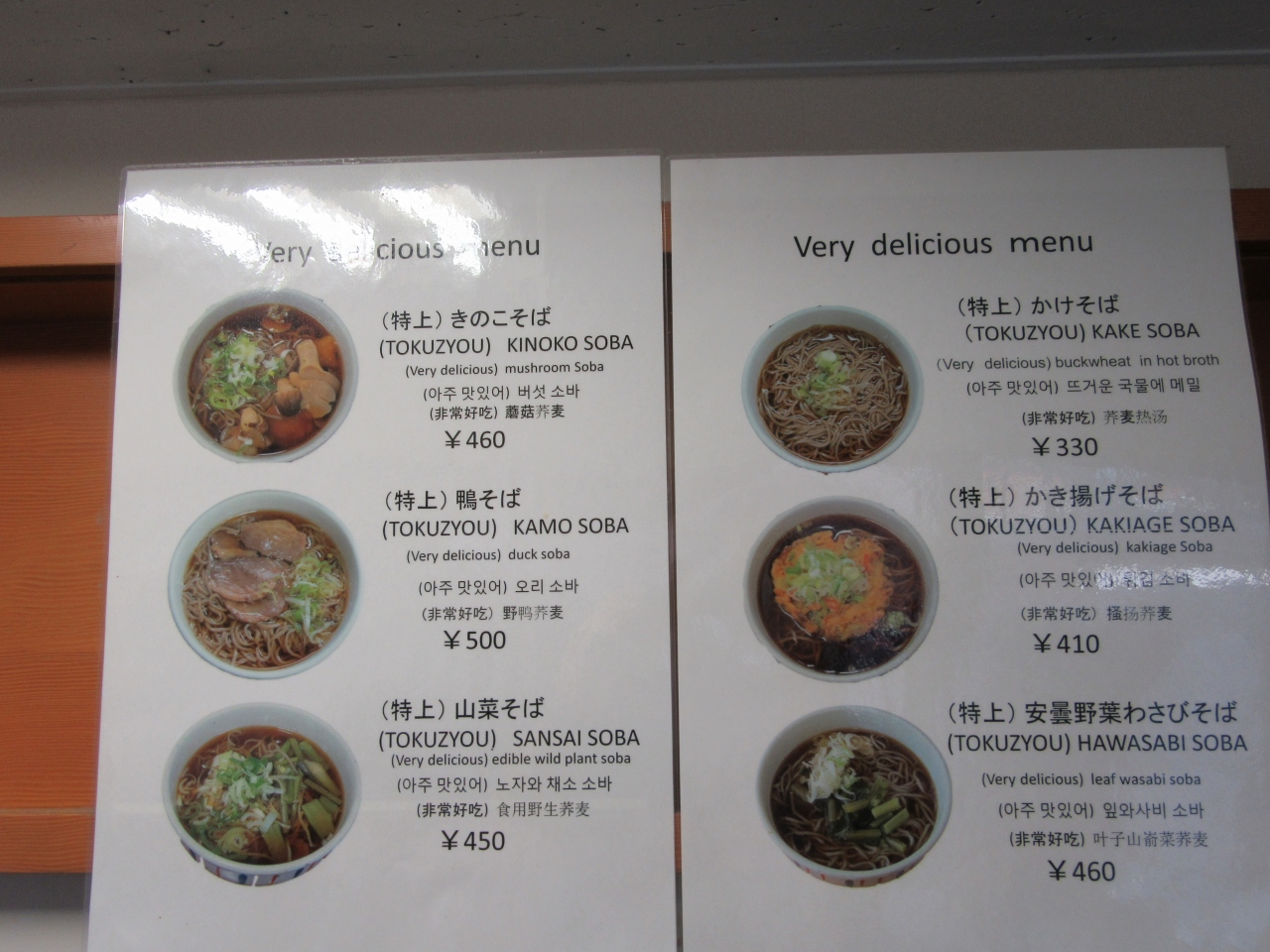 かけ蕎麦290円から特上とろろ山菜玉子そばで610円
