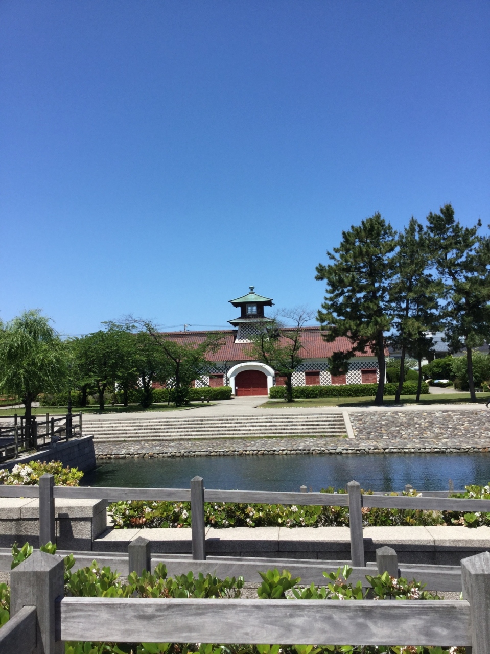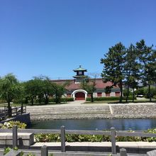 旧税関庁舎の周りは芝生。松や桜も植えられています。同じ敷地内にお堀や石造りの旧銀行建物(内部の一部がレストランとして営業しています)、洋風の建物の博物館本館があり、敷地内全てが美しく、写真映えします。すぐ側に信濃川河口があり、このエリア一体が本当に美しく、気持ちの良い場所です。