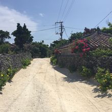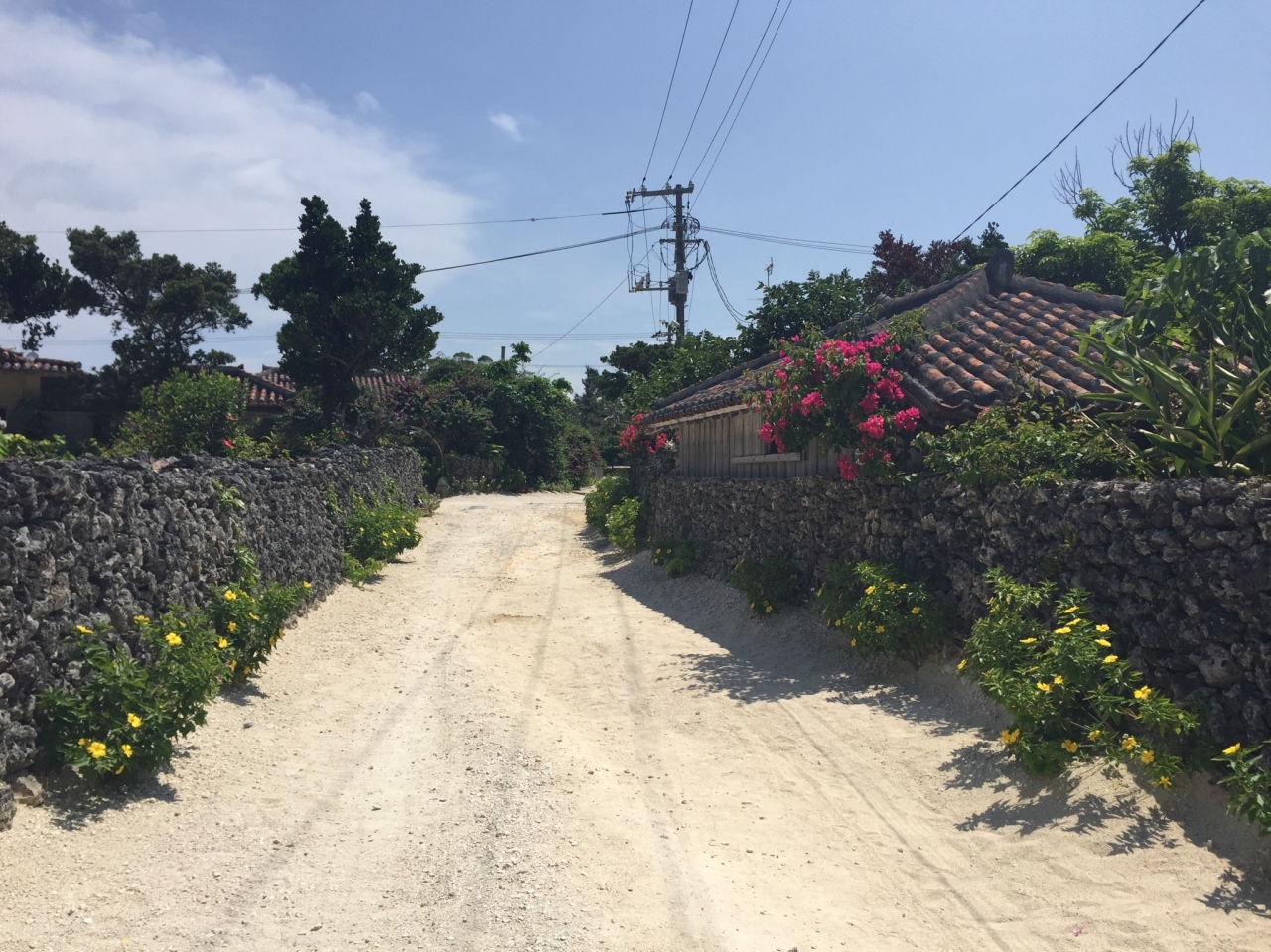白い砂が敷かれた道に、石垣に囲まれた家。想像通りの沖縄の離島、という感じです。