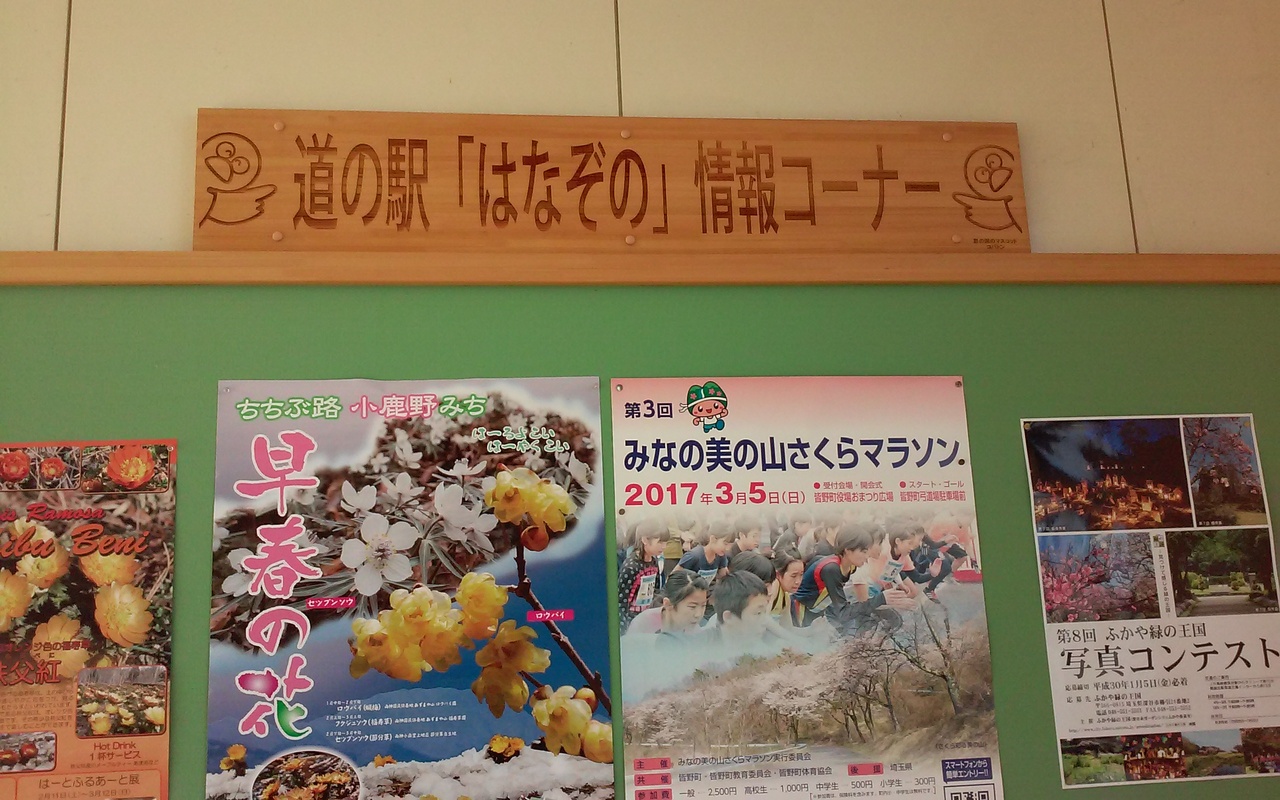 国道140号を走行中に「道の駅・はなぞの」の看板を見つけて、トイレ休憩を兼ねて寄って見ました。ところがなんとも様子がおかしい? 駐車場に車は止まっているものの、肝心の建物が見当たらない。トイレを済ませて辺りを見ると、グレーのネットのシートに囲まれた工事現場が。芝生の庭の隣でテントを張って物産の販売が行われていましたが、なんとも寂しい雰囲気でした。
