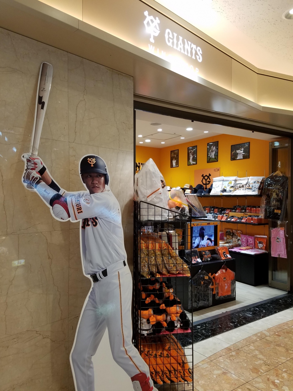 羽田空港第一ターミナルのマーケットプレイス3階にああります。中央付近のエスカレーターを登って行くので分かりにくいですが、東京の地元ジャイアンツのグッズがたくさんあって現在、往年のスターに関係するものもあります。全国区の人気チームだけあってそれなりに人がいました。