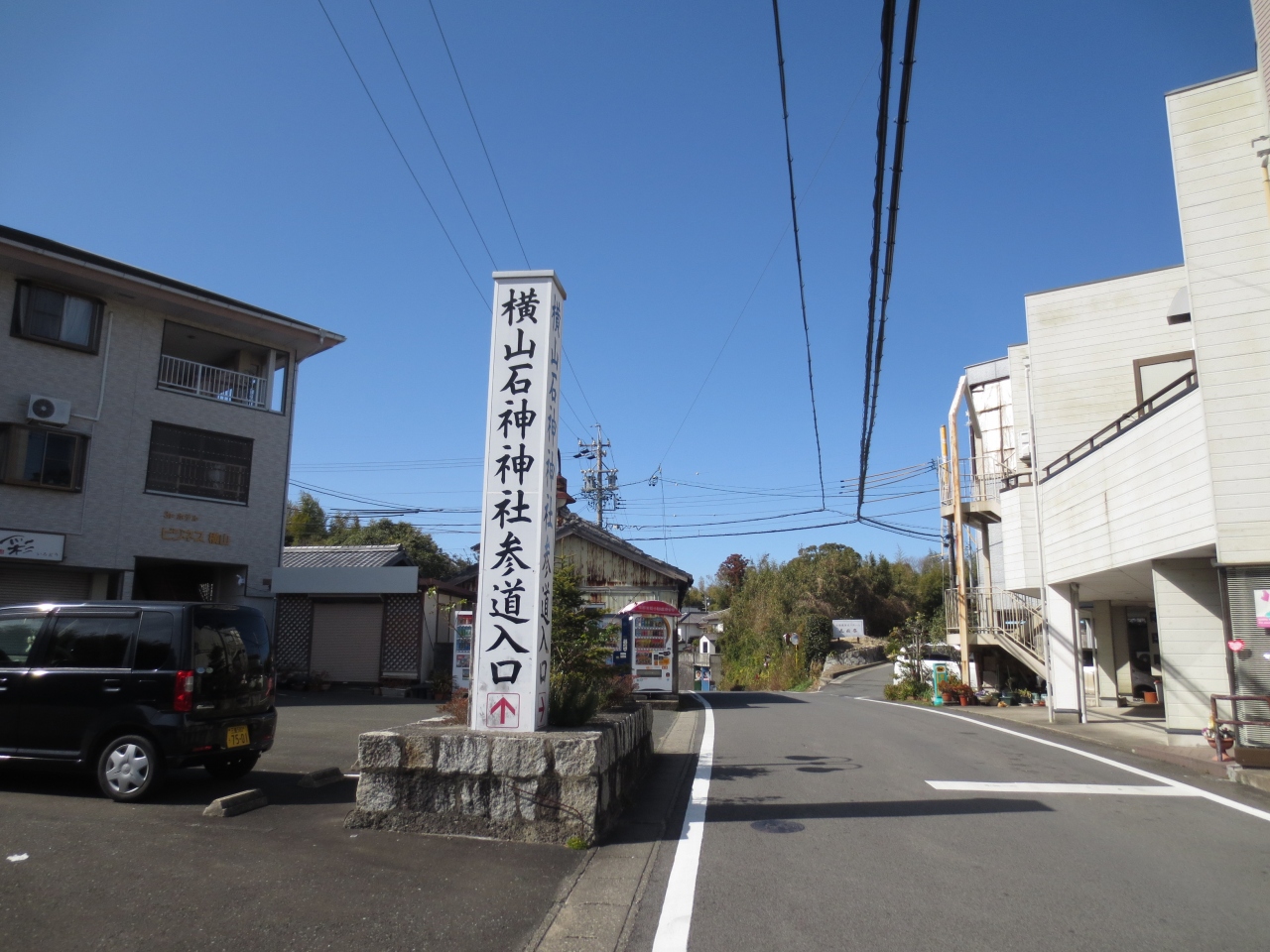 近鉄志摩線の横山駅で下車、駅前を右折し国道167号線にでて交差点渡り、一本道です。