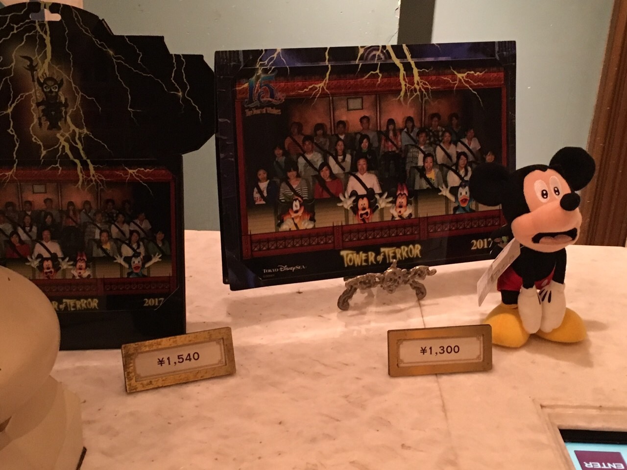 タワーオブテラーを乗った後に出てくるお店です。こちらではグッズの購入はもちろん、タワーオブテラー体験中の写真を買うこともできます。サンプル画像に雷が落ちるイラストが入るようになり写真を撮りにくくなりました。写真の売れ行きが良くないようです。