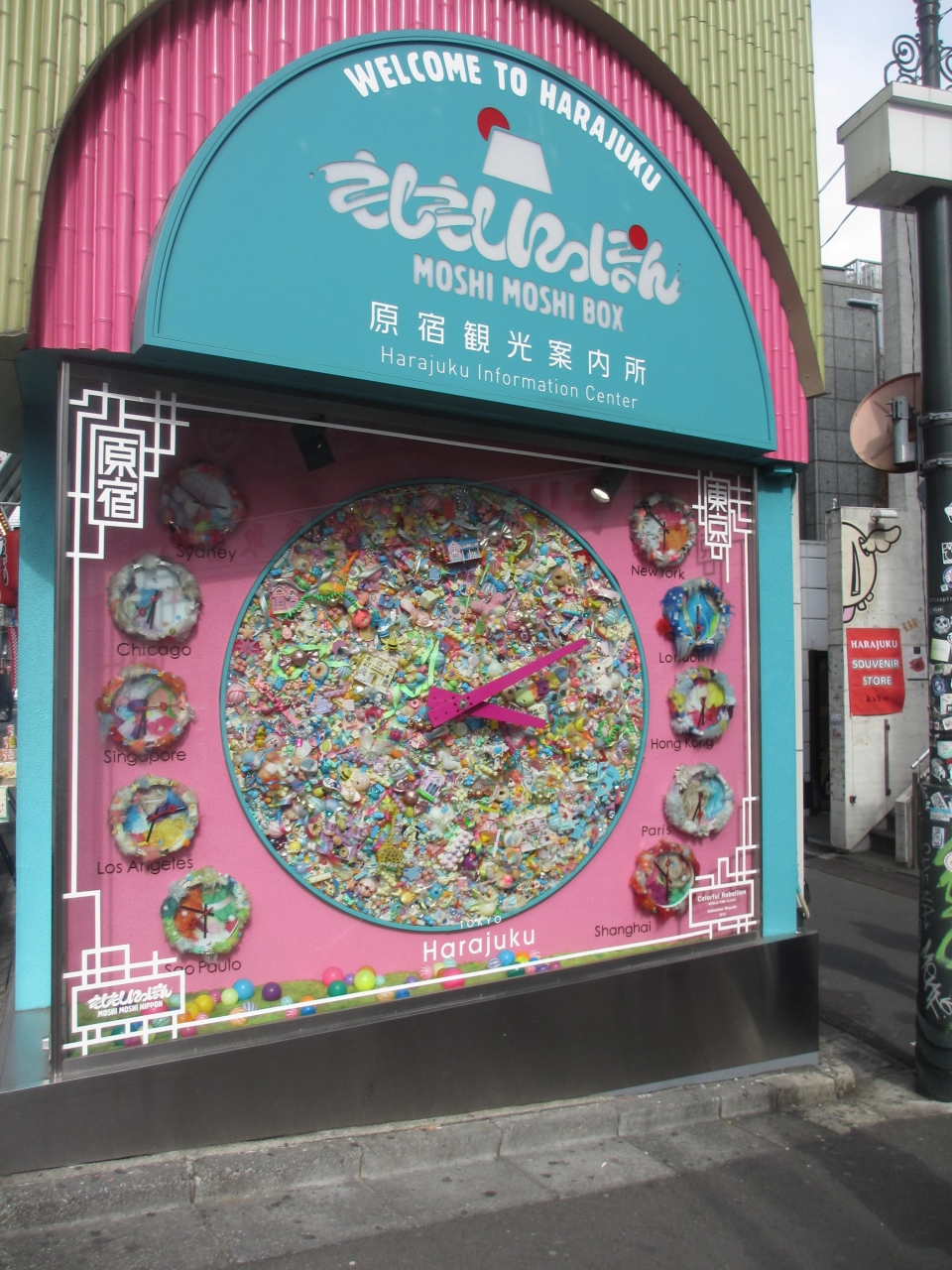 明治通り沿いで原宿通りの入口付近にある観光案内所です。原宿界隈を散策した際に行きました。外国語表記もあり、どちらかと言えば外人観光客向けだと思いました。建物の色使いや装飾などがいかにも原宿らしいと思いました。