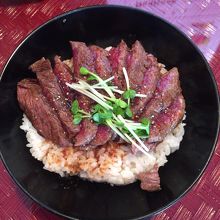 ローストビーフ丼が有名ですが、私はいつもステーキ丼にします。