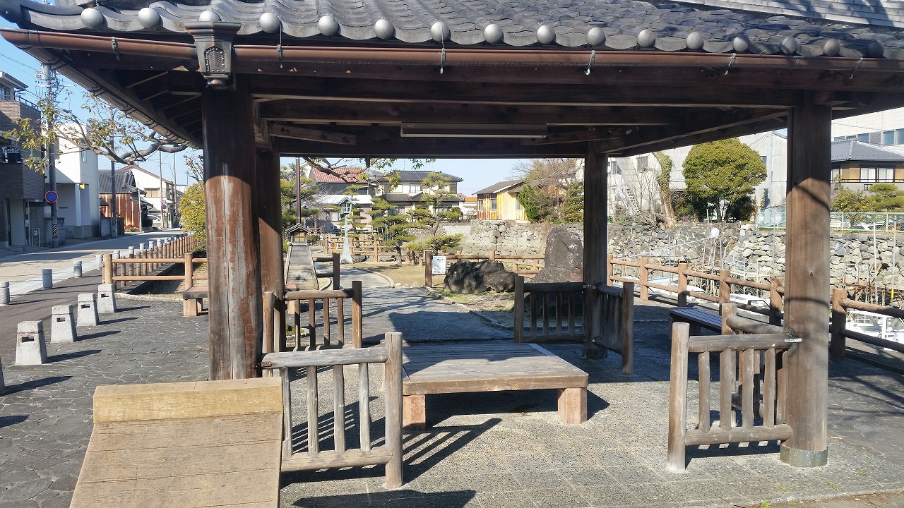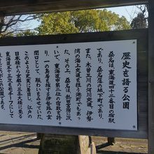 細長い公園でさほど広くなくて子供向けの遊具等は何も設置されていません。桑名宿や東海道53次の説明の看板が掲出されていて桑名の歴史を感じる事が出来る公園です。