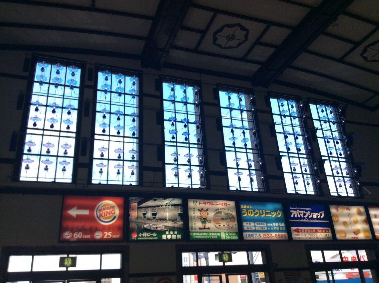 いつもレンタカー利用でしたので、今回初めて訪れました。歴史を感じさせる建物で、中に入ると高い天井。ランプがずらっと飾られて、とても綺麗です。