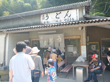 山の中の農家の納屋みたいな所がお店でビックリ。そんな山の中のディープなうどん屋に車がどんどんやって来るのにも驚きました。