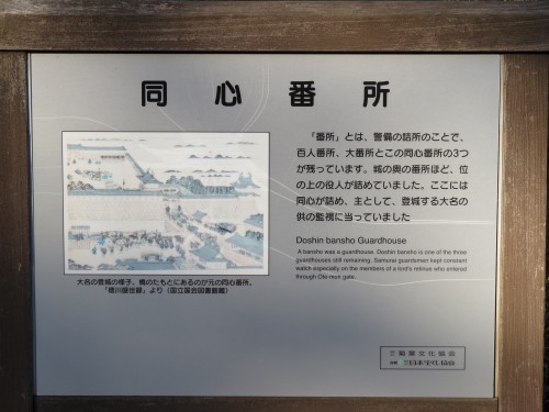 江戸城の大手門をくぐってから最初に目にする番所です。板張りの建物で、ところどころはめ殺しの窓が付いているくらいで、中の様子はさっぱりわかりませんでした。番所というよりも、監視小屋という感じの建物でした。建物内の写真が展示されていればいいのにと想いました。