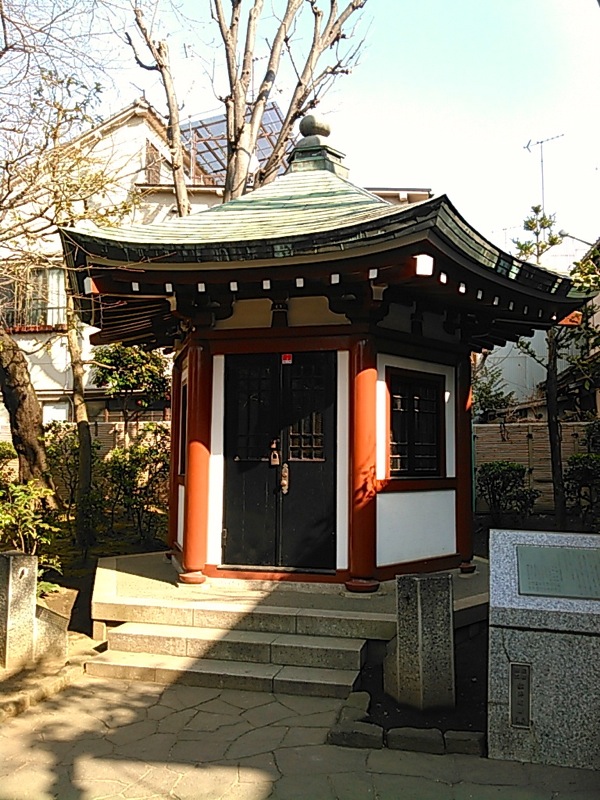 岡倉天心の旧宅跡が公園として整備されています。住宅街の中、家々に囲まれた小さな広場で狭いながら滑り台、ブランコなどの遊具が設置されています。目をひくのは、中に天心の坐像が安置されている六角堂。屋根は素敵ですが、全体として特に歴史的な風情を醸すような外装ではなく、正面の扉には大きなセコムのシール。。ちょっと残念なかんじ