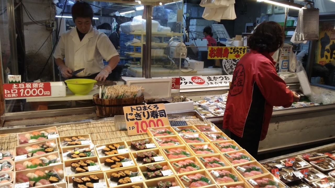 ひろめ市場の入口にあり、新鮮な魚類はもちろん、刺身、寿司などがパックで売っていて、ひろめ市場の中で食べてもいいし、持ち帰って食べるのにもよい。