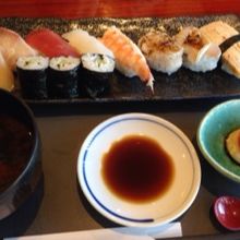 古風で高級感のあるお店。お昼は1000円くらいのランチメニューがあります。13時頃に行くと、日替わり定食が終わりで寿司定食のみだったので早めに行った方がよさそう。本格的なおすしと、手作り感のあるプリンが美味しかったです。