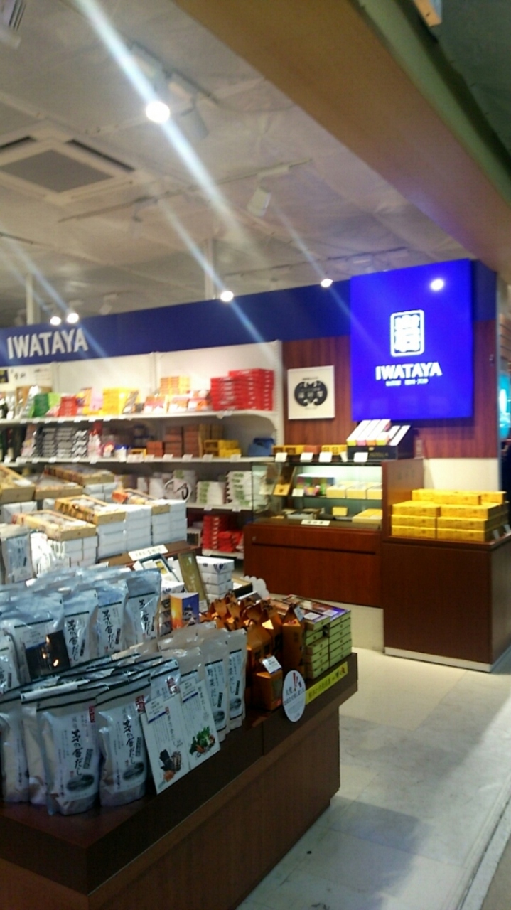 福岡空港の出発ロビー(2階)にある博多の老舗百貨店のギフトショップです。福岡空港が改装中ということもあり、仮設店舗での営業でしたが、博多で人気のおみやげは揃っていたので搭乗前の買い物にはオススメのお店のひとつです。