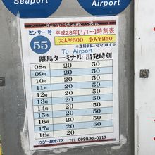 空港バスは2社ありますが、こっちは離島フェリーターミナルまでノンストップで早く、しかも往復だと100円やすい900円で乗れます。
