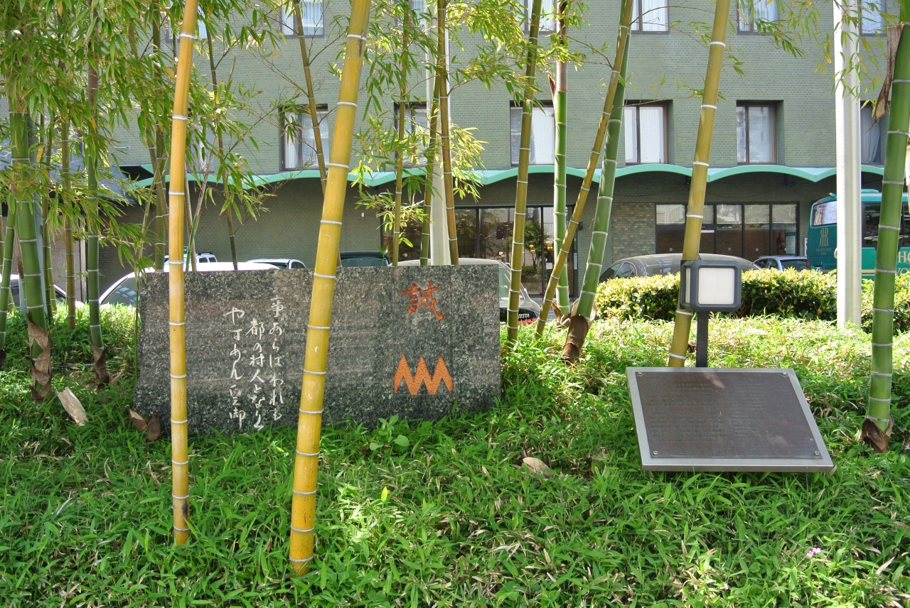 ホテルの敷地内にあり、竹も植わって説明板もあり、とてもきれいに整えられています。新選組の屯所と言えばドラマなどでも壬生ばかり出てきますが、実際には西本願寺に移り、最後にはこの場所にりっぱな建物が建てられたといいます。でも、ここに新選組がいたのはごくわずかで、戊辰戦争で退去したあと、どうなったのか、今はまったくそれを思い起こさせるようなものは残っていません。それでも、新選組ファンには必訪の場所ですね。