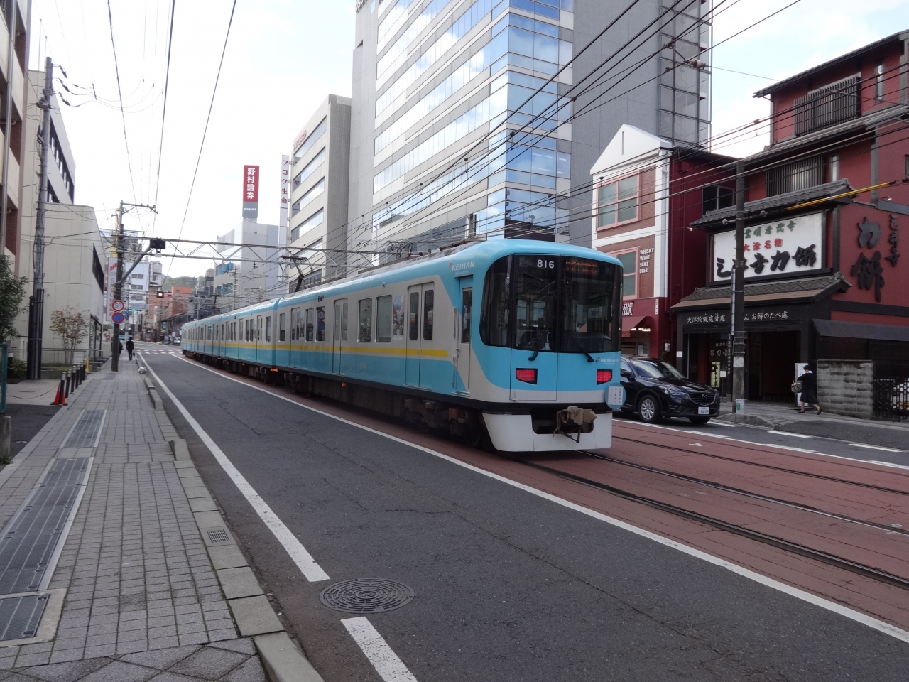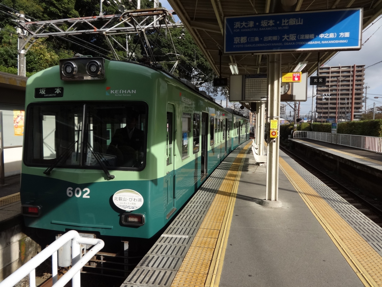 大阪と京都を結ぶ京阪電車と同じ会社の路線ですが、線路は完全に分かれています。