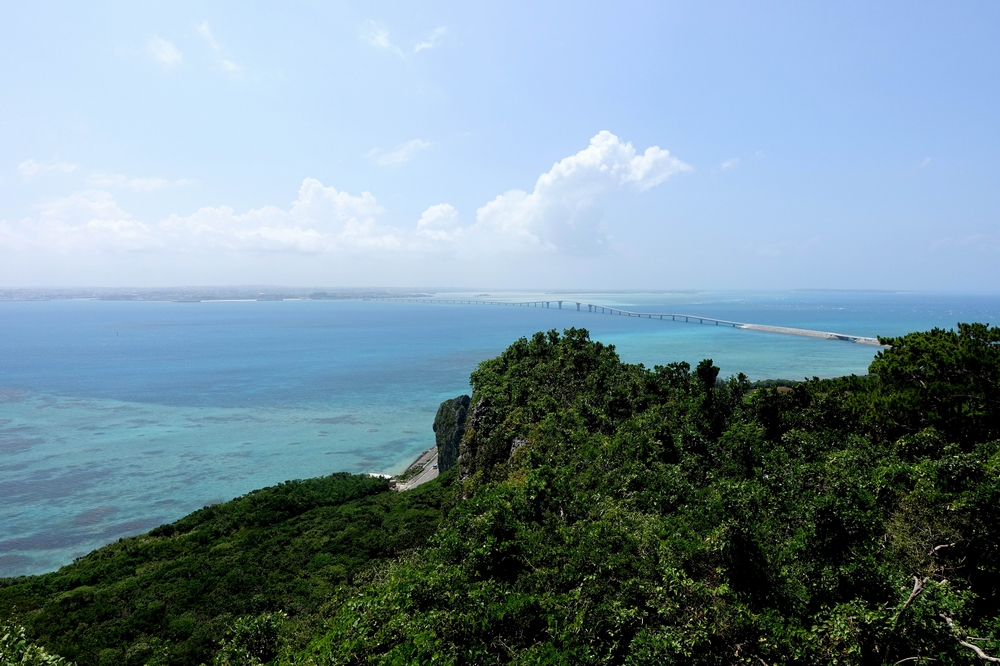 展望台は東側に向いて建っているので、宮古島や伊良部大橋そして美しい海の眺望となり天気が良ければ最高でしょう。いずれもやや距離があるので、遠くに見えるといった感じ。展望台の左側を見ると崖のようになっているのがよく分かります。