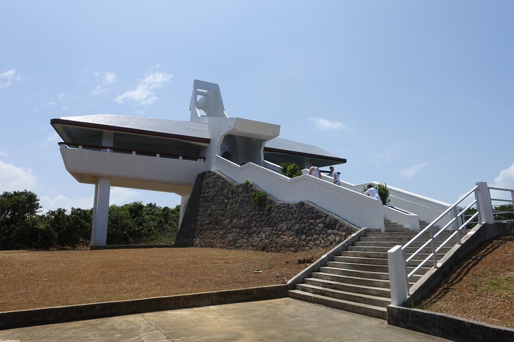 島で一番標高の高い牧山にある展望台です。外観はサシバという渡り鳥をモチーフにしています。伊良部大橋を渡っていると展望台は島の右手に見えるのですが、最短ルートは橋を渡ったら左に曲がるというのがポイント。このことは道路上に案内がないのでちょっと不親切かな。ま、右折しても最終的に到達することはできますが。