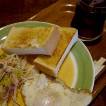 トースト、目玉焼き、サラダから成る。