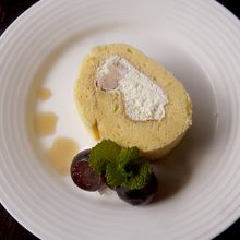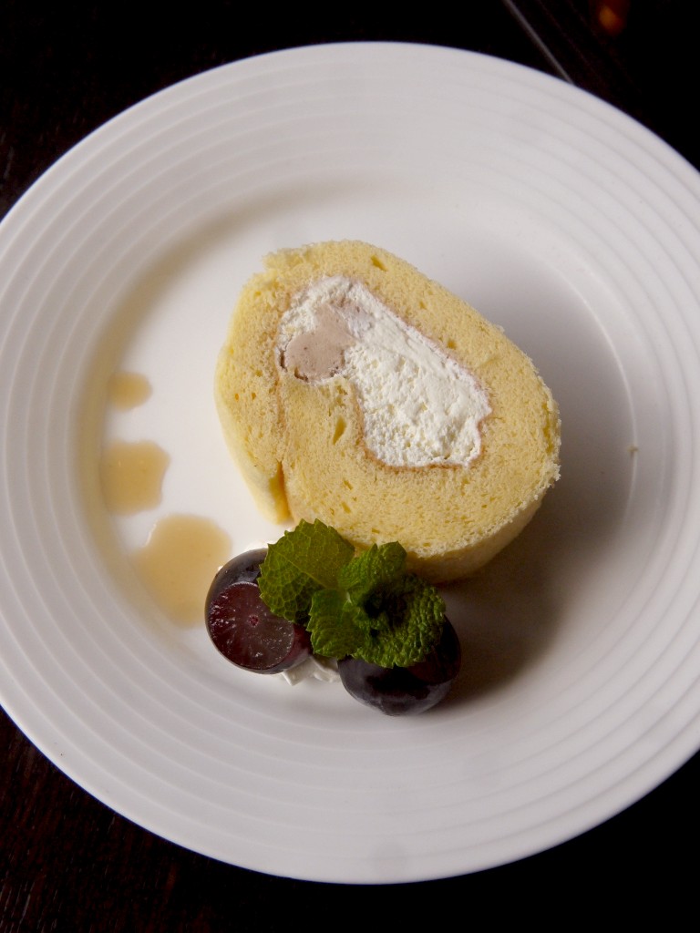 生クリームと、マロンクリームを、ケーキ生地で巻いてある。