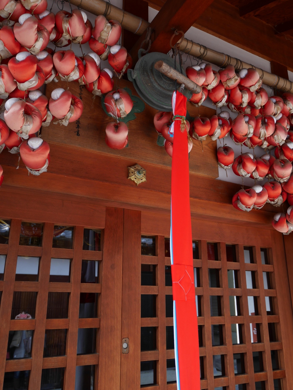ならまちの一角にある、庚申信仰でおなじみの小さなお堂です。軒下には沢山の真っ赤な「身代わり申」が下がっているのですぐにわかります。お堂の中には青面金剛像が祀ってあります。屋根の上にはちょっとユーモラスな、見ざる、言わざる、聞かざるの3匹のおさるさんもいます。