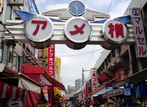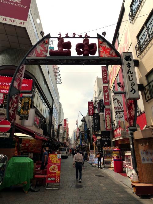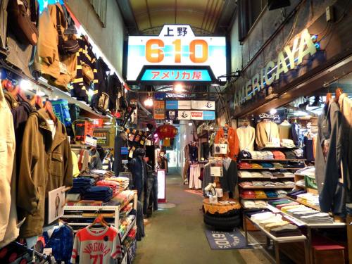 JR御徒町駅から上野駅までのJR線に沿って珊瑚ストリート、アメヤ横丁、上中(うえちゅん)などの商店街が連なります。