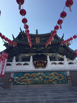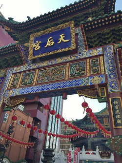 天后宮という門をくぐると階段奥には立派な八角形をした廟がありました。廟までは提灯が続いていて、台湾ドラマで見たお寺と同じで感動しました。廟は綺麗な装飾ときらびやかな配色。とても立派な廟で中国を感じることが出来ました。全体的にはこじんまりとした印象のお寺でした。