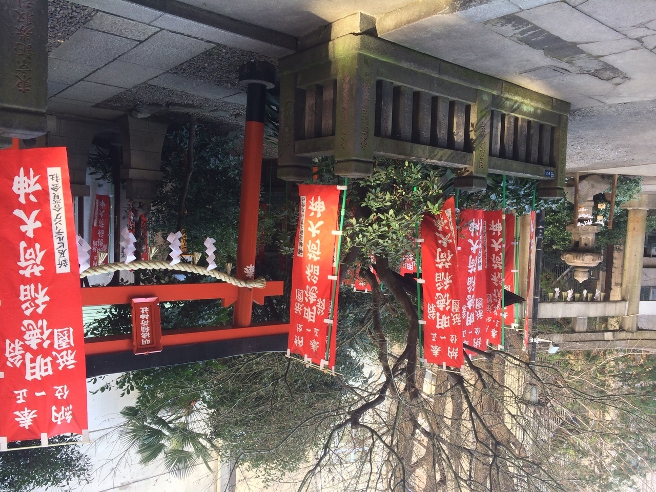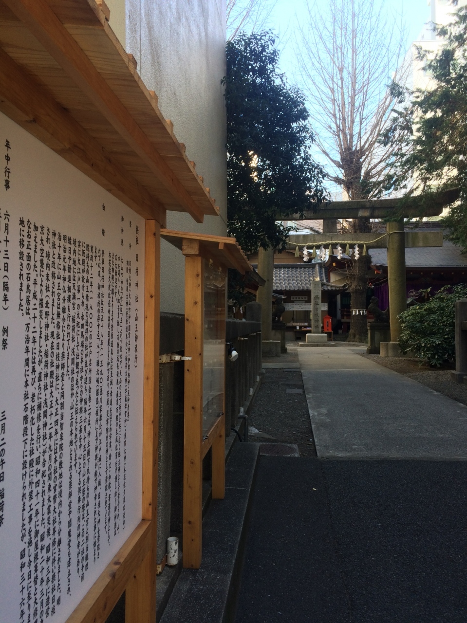 大通り沿いにありますが境内に入るとひっそりとしていました。周辺は人も多く車も多かったですが、境内は別世界で古い神社と言った感じでした。出入口は2箇所あり、境内に明徳稲荷大神があり赤い幟がたくさん立っていました。