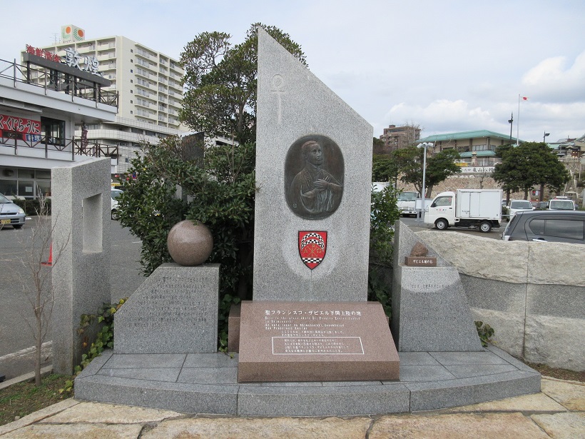 唐戸市場でお寿司を食べた後、門司港に渡るべくカモンワーフへ向かって歩いている途中で見つけました。歴史の教科書で見たお馴染みの姿のフランシスザビエルの描かれた銅版のレリーフと、1550年頃に彼が下関に上陸したことを説明する文書が書かれていました。駐車場の端にポツンと立っているので、注意していないと見落としそうです。