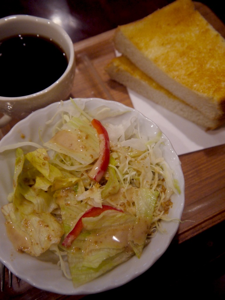 肉類は無いが(茹で玉子があるので、動物性蛋白質は摂取出来る)、典型的なモーニング。
