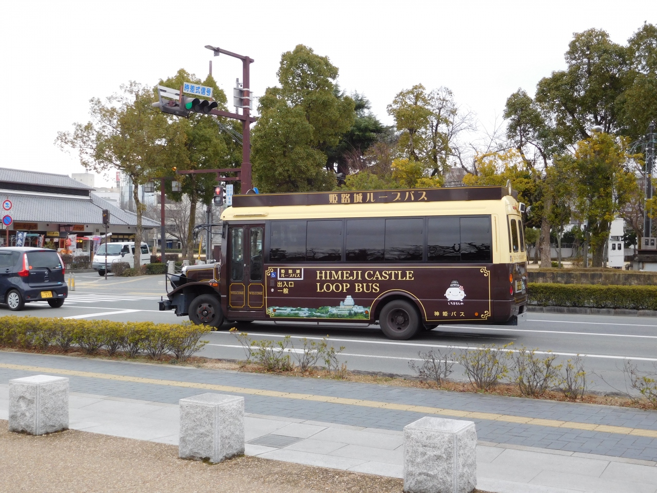 姫路城周辺を周回している、こげ茶色のレトロ調な雰囲気のバスです。1回の乗車につき、大人は100円で利用出来、土日祝の日中は15分ごとに運行しているので、気軽に利用する事が出来て便利です。また、1日乗車券を購入すれば、姫路城などの入館料が割引になる為、姫路駅と姫路城の往復だけで利用する場合でも、1日乗車券を購入した方が良さそうです。