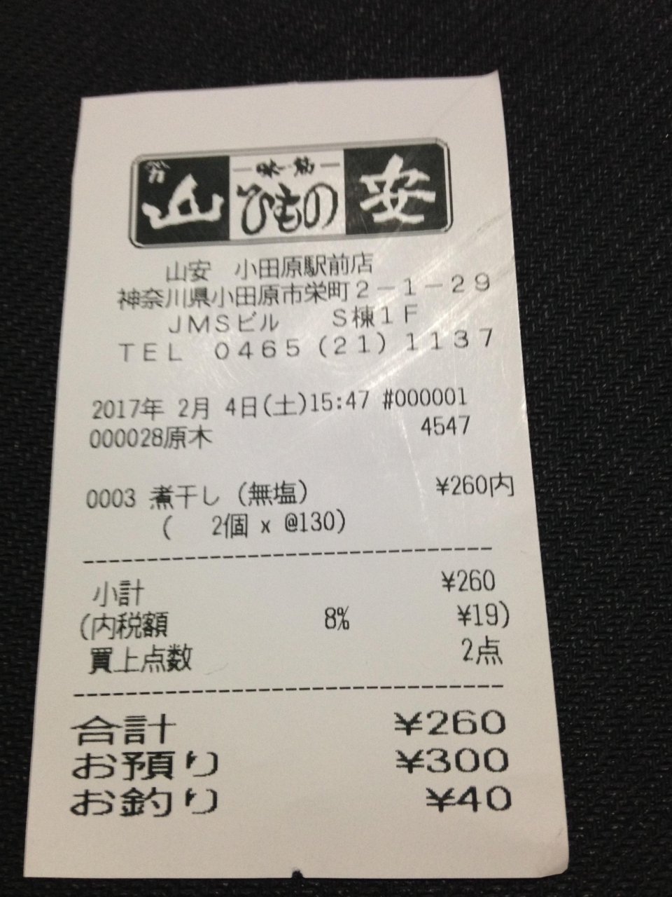 小田原に行った時にお土産を購入しようと立ち寄ったひもの屋さん。いろいろな種類の干物が冷凍や冷蔵状態で売っています。とにかく種類が多いので迷います。旅の途中だったので今回は煮干し¥130を購入。しっかりした品物でよかったです