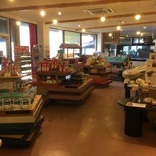 駐車場近くにあるみやげもの店で、建物が新しいのか、綺麗です。トイレも綺麗でした。レストランとお土産コーナーがありました。お土産コーナーも結構大きく、種類も豊富でしたが、団体客が多く、ざわざわしていました。