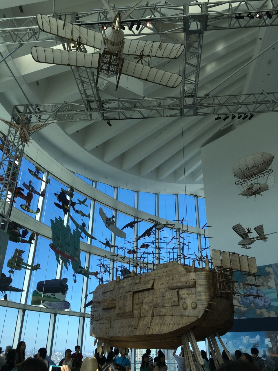 ジブリの大博覧会を観に行きました。52階にあるので、展望が素晴らしかったです。土曜とあってか美術館に入るまで暑い中1時間ほど並びました。入場制限しているはずなのですが入場してからも大混雑で、人に埋もれながら展示を見ました。ねこバスとの撮影にも長蛇の列だったので並びませんでした。カフェにはジブリ映画にちなんだ可愛らしいメニューがありました。ですが、こちらも相当な待ち時間のため断念‥。