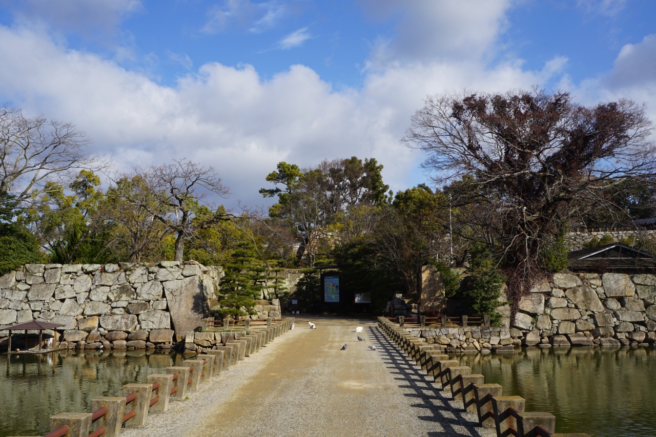 烏城というのは、岡山城のこと。その岡山城を中心に公園として整備されています。お堀の役割で岡山城の脇には旭川が流れていますが、川が氾濫してけっこうな水害にもあったことがあるよう。石垣の高い場所にここまで水位が高くなったと印が付いていました。のどかに見える公園ですが、少しイメージが変わりました。
